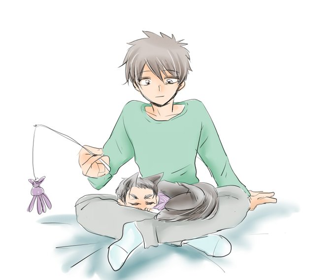 大春 ねこんべと春ちゃんの出会い(最初はつんつんの方が大春っぽいかと思ったけど、ねこんべが無意識にゴロゴロしちゃうのもアリかなって☺️)