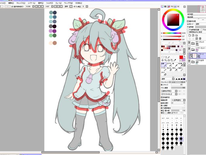 と言う訳で、線画が完成している状態から頑張れば数十分で下塗りまでは終わりますです(੭ु´͈ ᐜ `͈)੭ु⁾⁾