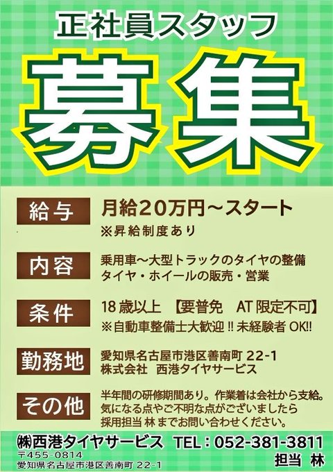 名古屋にある西港タイヤサービスの店長&看板娘のサイコウちゃん!今日も元気にお仕事してます♪ #企業公式が毎朝地元の天気を言い合う #企業公式相互フォロー #創作クラスタフォロー祭り #イラスト #オリジナルキャラクター #イラスト好きな人と繋がりたい