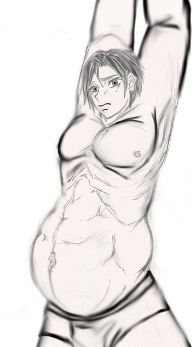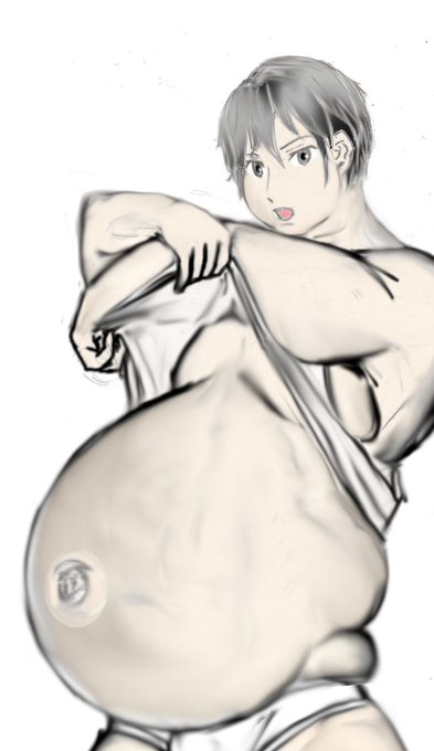 pixivで投稿した『放課後大食い』登場キャラのイラスト。でべそが真壁君で、目元が濃ゆい方が倉木君。