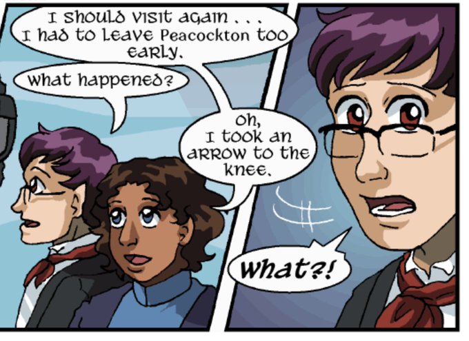 HAHAHA the "took an arrow to the knee" physically yeeted my soul back into the year of our lord 2012, and the "oh this is an common expression in my culture" defeated my body while my spirit was gone