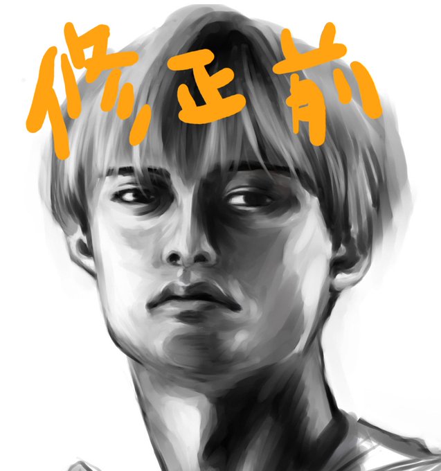 腹筋まで頑張った后くんのイラスト、その後デッサン正しい方向へ顔のパーツ直してたら、明らかに最初のが后くんだったことに気づいて( ⊙_⊙)てなったので、昨日の修正全部捨てた…… 第一印象大事……