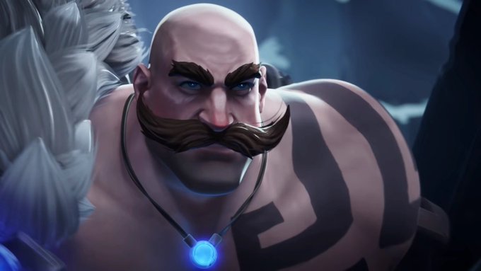 Trans king Braum!!! The freljordian kids are very impressed by his cool scars and big muscles (and sometimes his cool mustache)