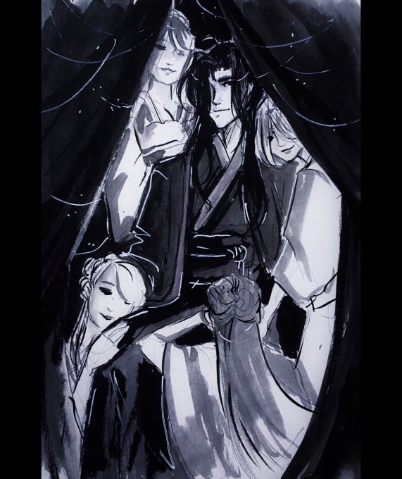 “When she had been fighting, her face was almost hideous, but now, with her dark face against Wei WuXian’s lap, she somehow seemed to be a charming concubine, obediently pleasing her master.”