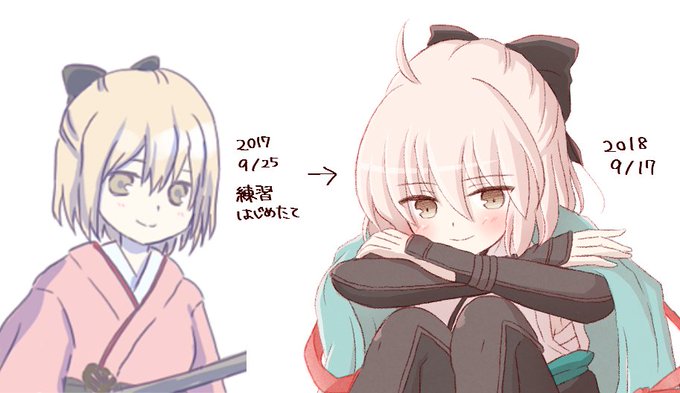 余談ですが、沖田さんお迎え一周年=絵描き歴も一周年になります! 一年間ほとんど毎日練習しました…大分変わったと思うので比較画像見てやってください…