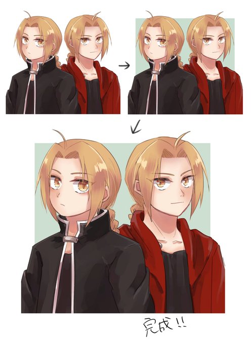 とっても遅くなりましたが自慢させてください!天邪鬼さんにリクエストしてエド描いていただきました!!兄さん安定のかわいさ…小さい大佐すごく好き…💓でんぴ色紙もいただきましたがこちらはひとり占めします…!!本当にありがとうございました😆💕