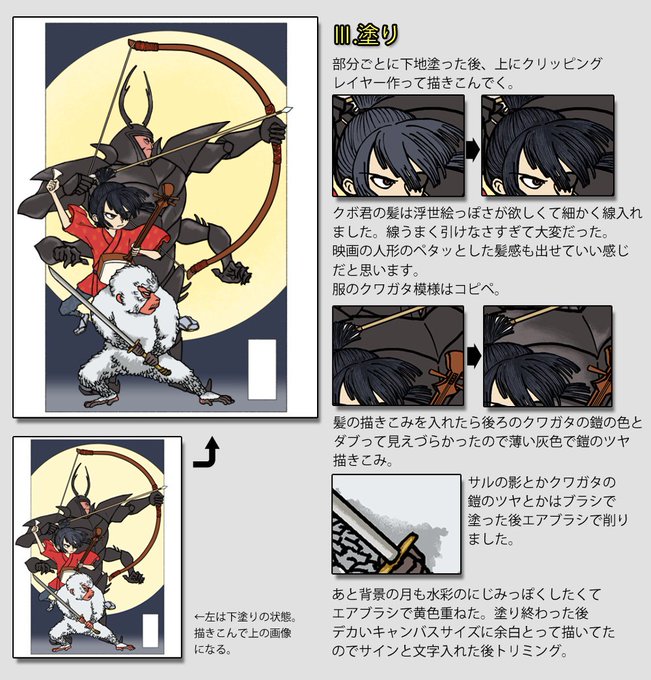 pixivで自分の作品見返してたら描いてた時のこと振り返りたくなったので唐突にメイキング画像作ってた。クボのファンアート企画に出してたやつのメイキング。正直備忘録兼自分が言いたいこと並べただけなので需要と参考になるかは考えてません。