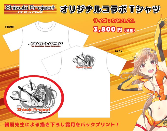 お待たせしましたぁ ۬৺۬☆ ShizukiProject×J'SRACINGコラボのTシャツが遂に発売決定っ ۬৺۬☆ オレンジを基調にしたフロントロゴに描き下ろし霜月をバックプリントしました ۬৺۬☆ 来春発売予定ですのでお楽しみにっ ۬৺۬☆ #ShizukiProject