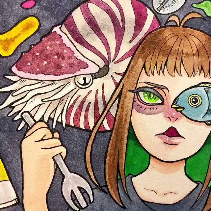 完成〜🐙オウムガイ🐙🐙 キモ可愛く描けた〜🌊🌊