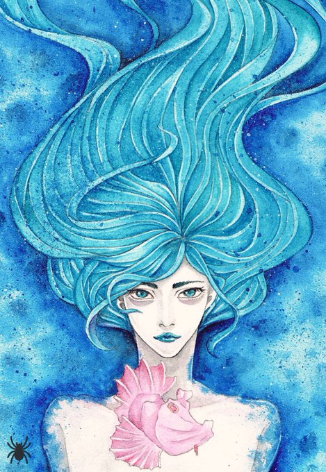ちょっと褪せた青が好き。 水中の絵をよく描きます🐟 #青の創作クラスタと繋がりたい