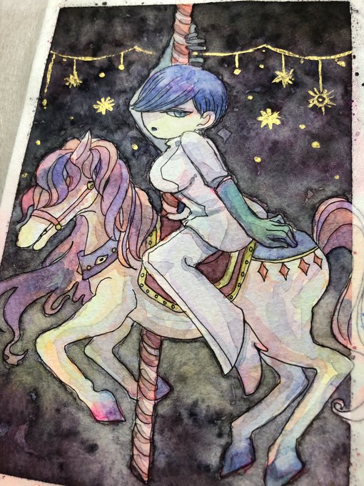 元絵。金色はぺんてるの水彩絵具。角度変えるとギラギラ。