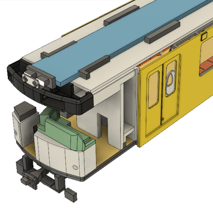 前作では現物の比に忠実過ぎた結果、台車の横幅が大きすぎて車体からはみ出していました。このため、なるべく見栄えを崩さないように横幅を小さくしました。