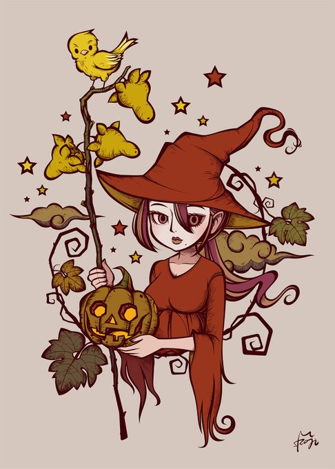 #ハロウィン #魔女 #ツノナス #フォックスフェイス #ジャックオーランタン #イラスト #Halloween #HappyHalloween #witch #JackoLantern #illustration
