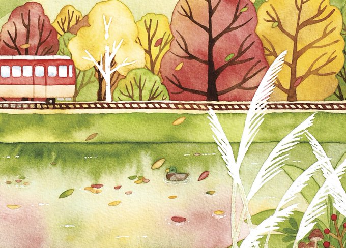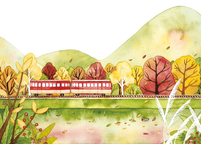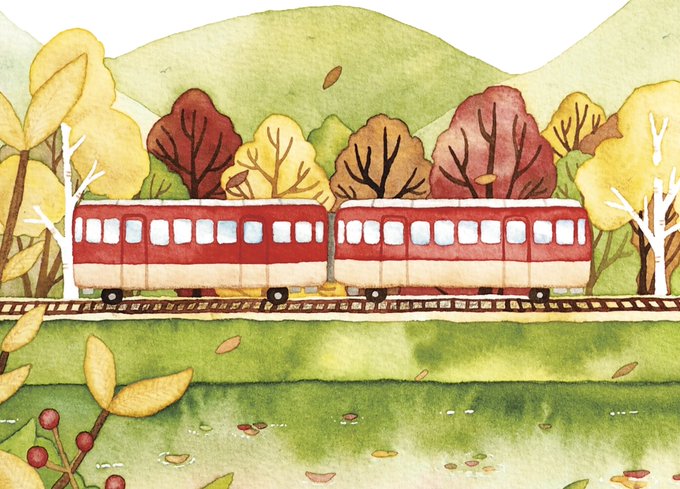 秋。ローカル電車でまったり旅。 いきたーい! #水彩 #watercolor #artwork #電車 #秋