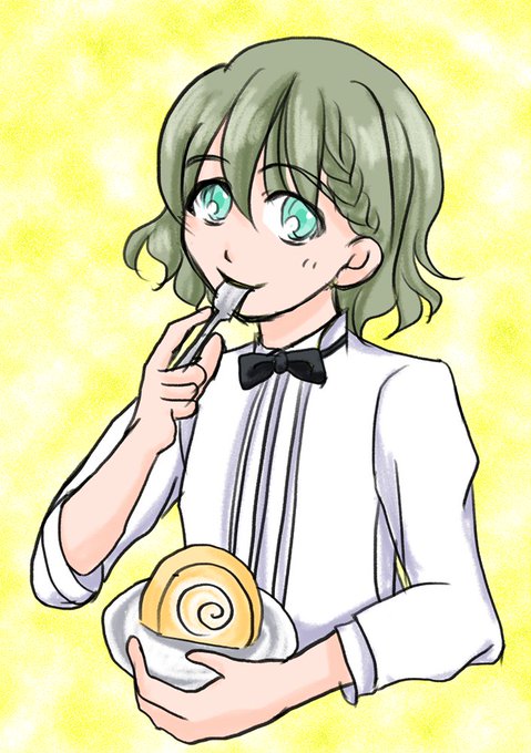 マシュマロありがとうございます!せつこさんはお元気です!元気いっぱい素晴らしい! ロールくん描きました!ケーキ食べて元気100倍!です!