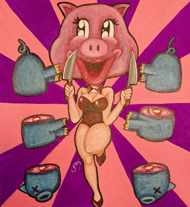 豚をさばく絵