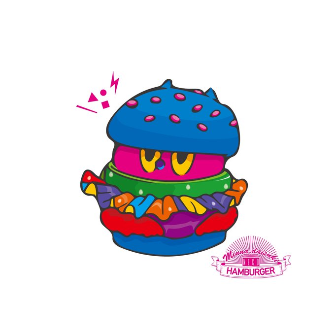 ハンバーガーを食べたい気持ちと、ネコを愛でる気持ちとかフュージョンしました。 #ネコ #ハンバーガー #イラスト