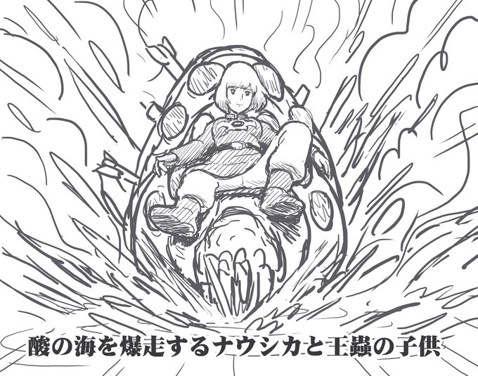 酸の海を爆走するナウシカと王蟲の子供