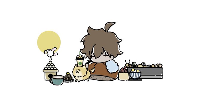 ・コンビニおでん(什器) ・モンブランケーキ ・あったかカフェラテ ・うさぎと団子 ありがとうございますー!