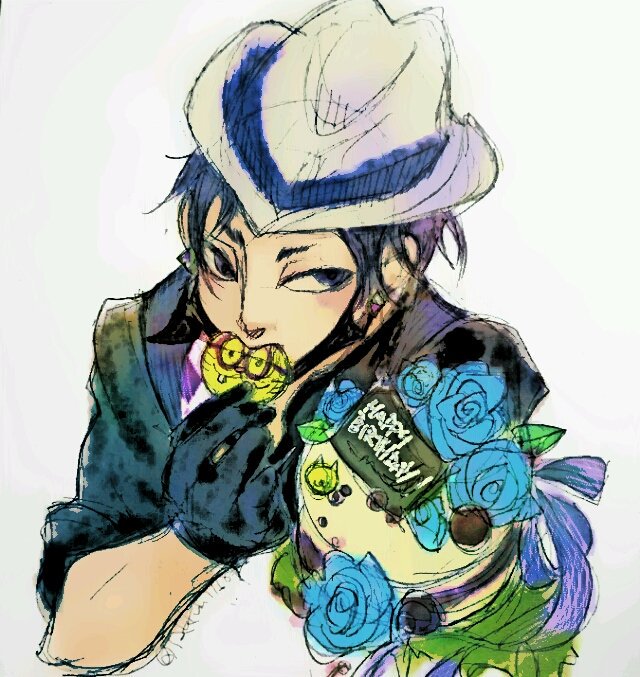 チンピラ一松おたおめ~(ノ`ω´)ノ✨ で、いいのかな?初登場記念? 色塗り下手すぎて薔薇ケーキ不味そうになっちまったごめん( ;∀;)