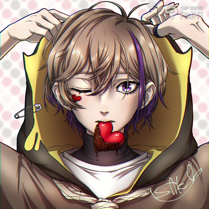 バレンタインデー近いので勝手に口にもハート追加しました🥴ざっくぅ。さんのフードのデザインとかかっこよくて萌えました💐💕ありがとうございます!