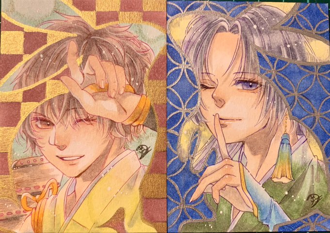 使用画材→コピック、コピックマルチライナー、コピック筆ペン、透明水彩(ハルモニア:ダスクスカイ)、呉竹リアルブラッシュ(真ん中の松の部分)、ホワイトペン、金ペン