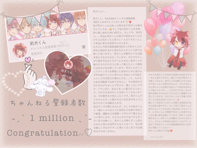 チャンネル登録者数100万人おめでとうございます🥂❤️これからの活動も全力で応援するので頑張ってください!!