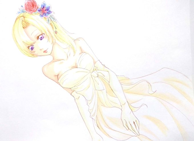さっきの花嫁さんペン入れして色塗ってみた!!