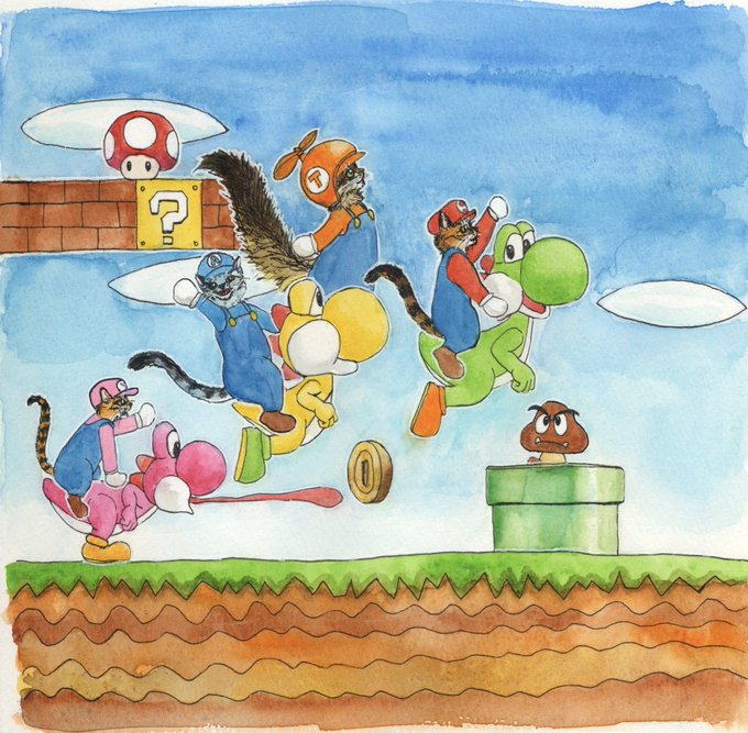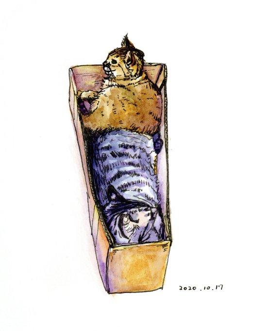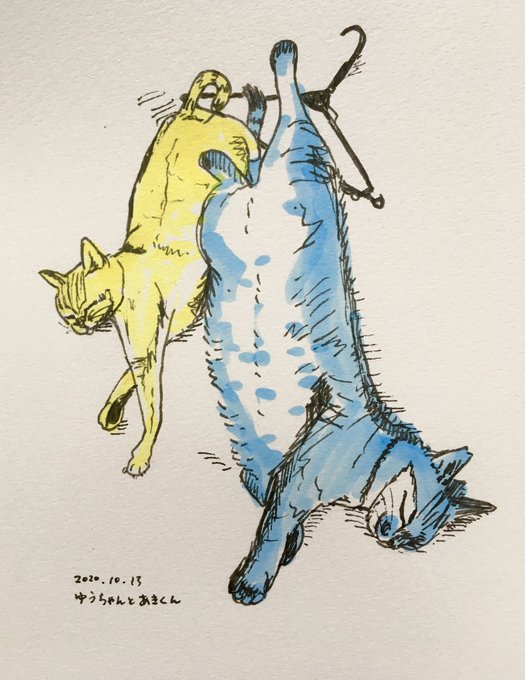 水彩、色鉛筆、コピックなどで描きました🐱🐱🐱🐱 #ねこの日
