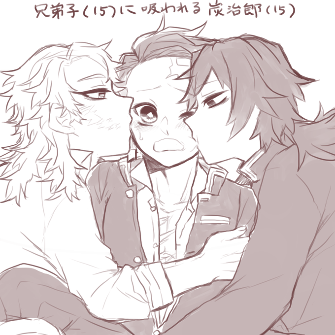 幸せな兄弟子サンド吸いたいよぉ~~~~~~ 元ネタはぷりんちゃん(@KrkrPikapika)の疲労困憊ぎゆさんです!描かせてくれてありがと~~~~~~😚💕💕