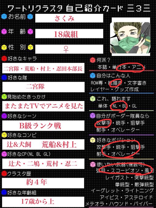ワールドトリガー好きさん語りましょう🍻✨ いろんな人と仲良くなりたいでっしゅ! #ワートリクラスタさんと繋がりたい #ワートリクラスタ自己紹介カード