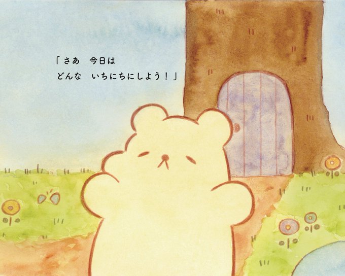 作家活動当初から現在まで人気で、自費出版の絵本の主人公としても描いた、綿から生まれたクマ「わたくまくん」です🐻❄️