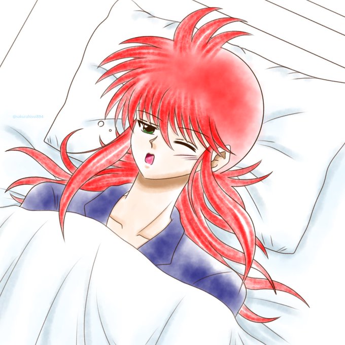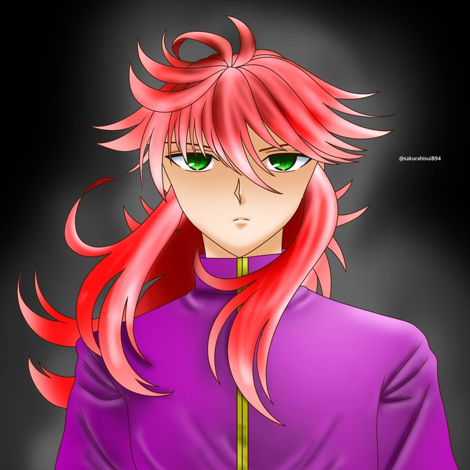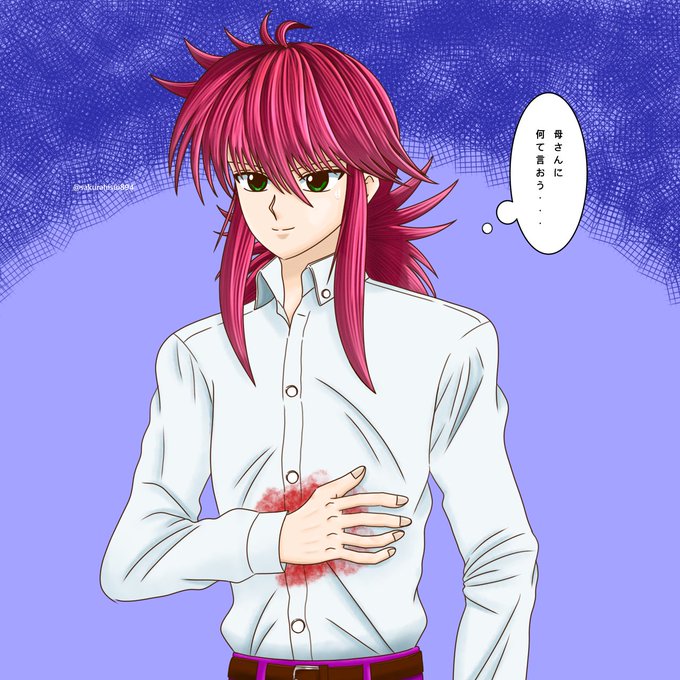 ウォールステッカーのイラスト見て描きたくなった制服蔵馬さん。 降魔の剣で刺された後。 #蔵馬