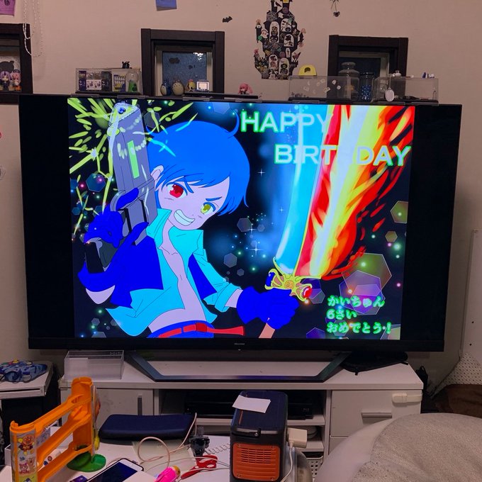 息子さんのBIRTHDAYイラスト、ギリギリ起きる前に完成しました♪