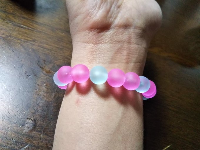 セリアの100均で藤居朋のブレスレット作ってみた。 #デレステ手芸部 #デレマス手芸部 手芸部のタグ付けるほどの出来でも無いけど簡単だからみんな作ろう。