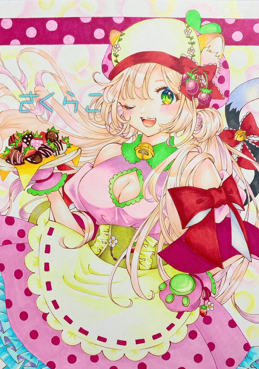 【デザートは、いちごだにゃんにゃん♡】 素敵なご縁がありますように.。.˚✧⁎⁺˳✧༚ #オリジナルイラスト #イラスト #絵師 #アナログイラスト #キャラクター #アニメ #コピックイラスト #イラスト販売 #ヤフオク #オークションイラスト #絵描き #手描きイラスト #原画 #ネコミミ