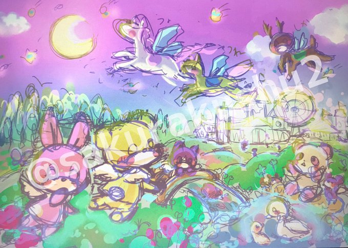 背景の描きこみ中! キラキラも描き加えてみたり✨