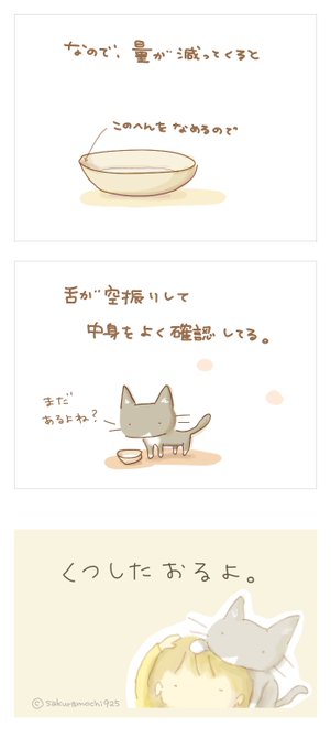 『くつしたおるよ。』 018. 飲む位置 コマ版 #猫漫画 #猫マンガ #コミック漫画 #コミックエッセイ #エッセイ漫画 #猫イラスト
