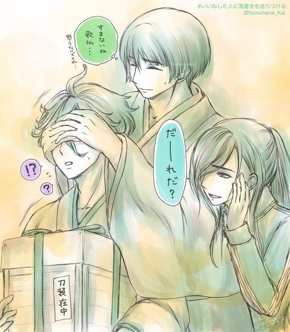 1枚だけ描いたのでup。石切丸さんにお祓いしてもらう歌仙さんです😊🌸✨