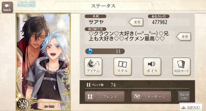 ボイスありで内容も濃いので興味がある人は是非ともプレイして下さい(*^^*)友達招待で477982を入力するとお互いに1000円分のアナGが貰えます☆