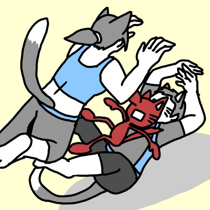 #ねこの日 だからといって 猫背を許してくれなさそうなヤツらに挟まれるゲムヲ え...?塗る...?(おい)