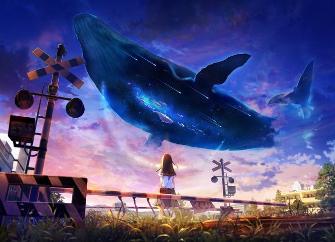 空にいろんなものを浮かべたイラスト