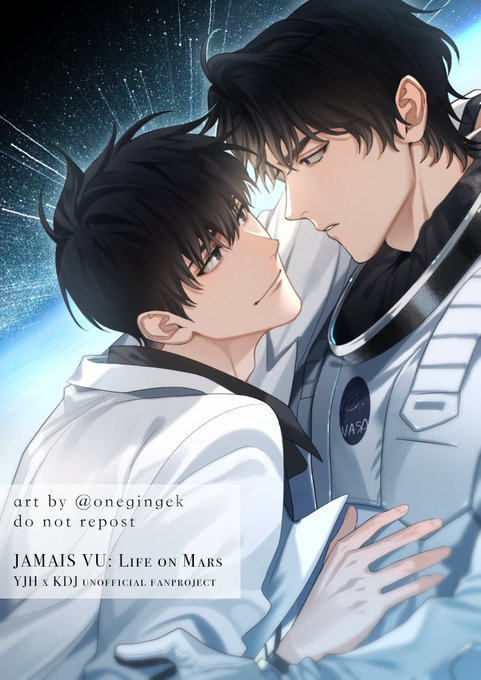 everyone please bless your eyes with this beautiful illust I received based on my joongdok sci-fi romance doujinshi.......😭🖤🤍🌠