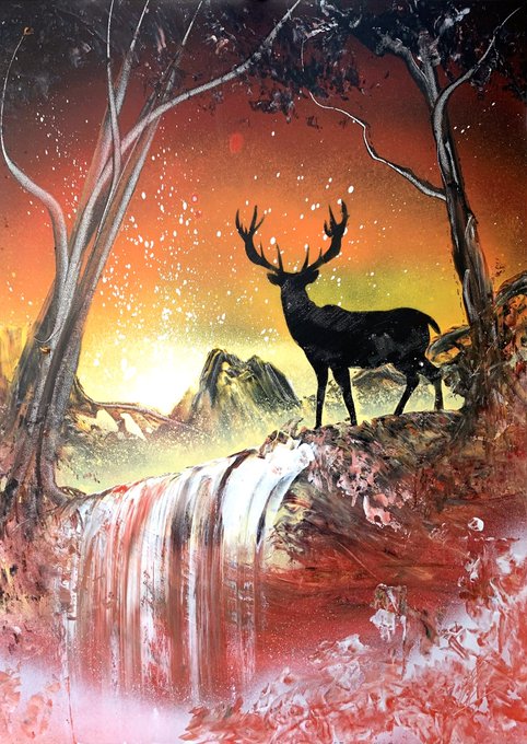Day 6 of a festival where I paint 14 hours a day with zero breaks … do I at all miss the easy day job I just left to go back to painting… yeah fuck no. #spraypaintart #commissionsopen