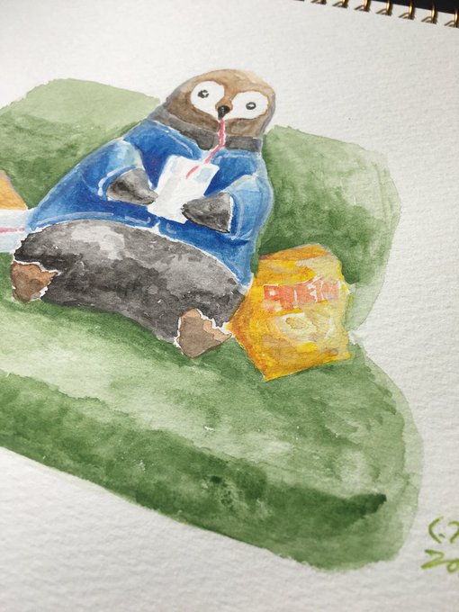 テーマ「アオ君の休日」 紙:ワトソン紙 #水彩
