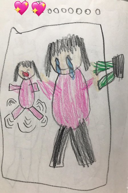 6歳が、せきやゆりえさんのYouTube見ながら頑張って描いたのがこちら。