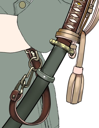 滅多に描かない刀帯周り。 このテカテカした柄でなんの軍刀か判りやすいね