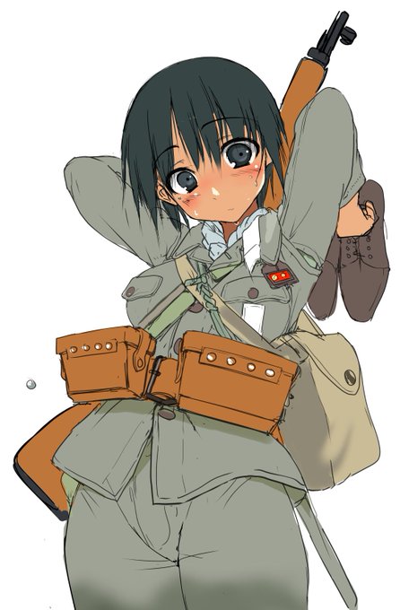 結局誰も黒髪ショート褐色細身日本兵美少女描いてくれなかったので、仕方なく自分でで黒髪ショート褐色細身日本兵美少女描いてた