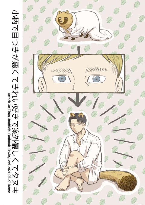 タヌキが見知らぬ男(リヴァイさん)に見えるようになるエルヴィンさんの漫画で新刊を出せたらいいなと思っております