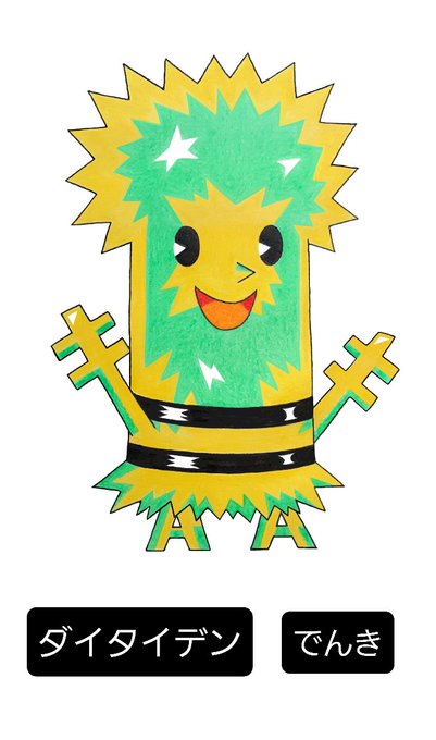 前回投稿したダイタイデンの進化前を描きました。 かみなりのいしで進化する設定で初代のタマタマ系統をリスペクトしたデザインとなっております。 複数体が変異して一つの個体になるのはロマンがあると思うので、電信柱モチーフならそれが自然にハメ込めると考えました。 #オリポケ #fakemon